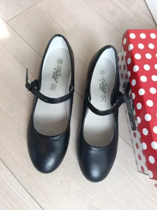 Zapatos de baile para niña de la marca Bubble Kids. - Color negro. - Talla 35. - Cierre con correa y hebilla.