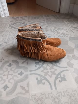 Zapato de Zara talla 37 planos, como de ante con borlines parte delantera. Perfectos para combinar con conjunto de Zara( ultima foto )