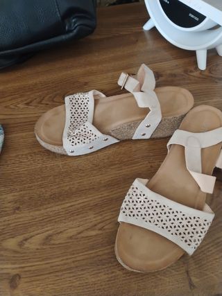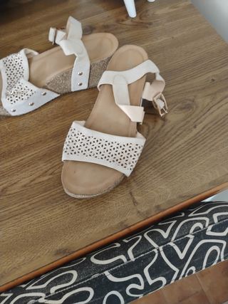 zapatos sandalias de fiesta usadas solo un día para la boda de mi hijo junto con el vestido que tengo también en mi perfil,como nuevas talla 40.