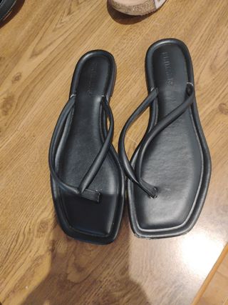 Chanclas planas para mujer con diseño moderno. - Material sintético. - Tira fina. - Punta cuadrada.