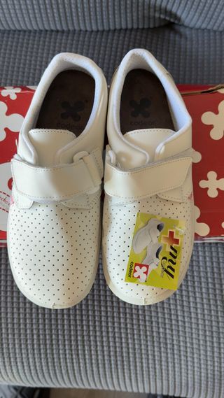 Zapatos de trabajo para mujer de la marca Cedeor. - Diseño perforado. - Cierre de velcro. - Color blanco.