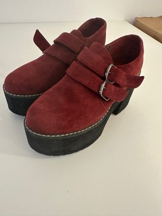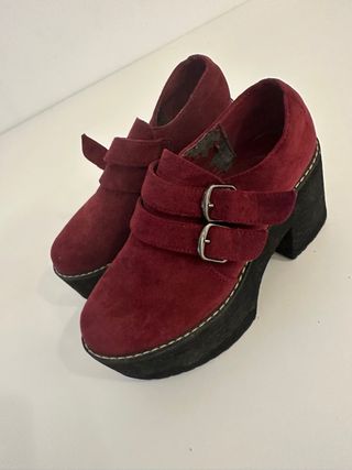 Zapatos plataforma vino tinto con hebillas