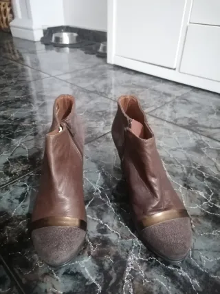 Botines de piel marrón y dorado usados 1 vez