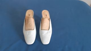 Preciosos zapatos de novia de la marca Jose Illana. Son de color blanco con detalles plateados. - Zapatos de salón con tacón bajo. - Diseño elegante y atemporal. - Material de alta calidad. - Perfectos para un look de novia clásico. - Talla 40 Están usados, se puede ver la foto de las suelas. Son muy cómodos. Pregunta sin compromiso.