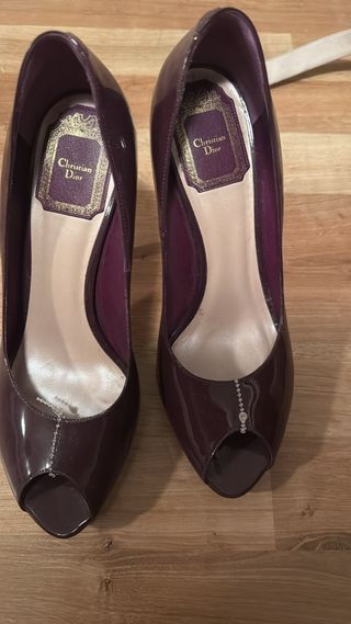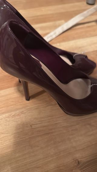 Elegantes zapatos de tacón con acabado brillante. Solo los he usado una vez, están en perfecto estado - Color granate oscuro - Tacón de aguja bajo