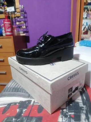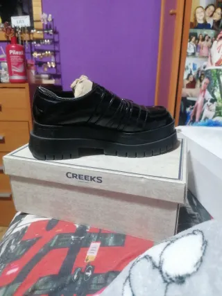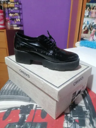 Zapatos de plataforma de la marca Creeks. - Diseño de charol. - Suela gruesa y resistente. - Estilo moderno y llamativo.