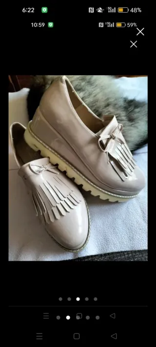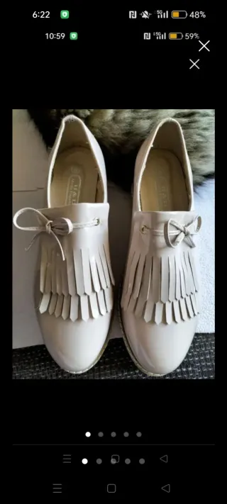 Tienen un roce de ahí el precio ver última foto.Elegantes zapatos planos en color beige con detalle de flecos y lazo. - Diseño con flecos en la parte delantera. - Adorno de lazo. - Suela de esparto.
