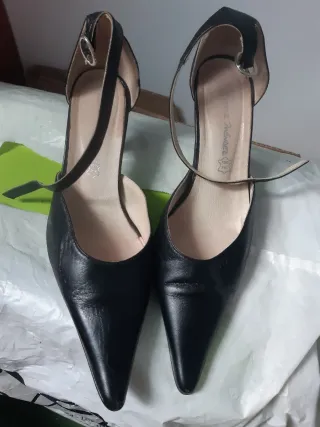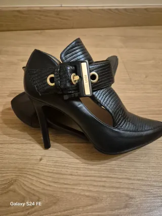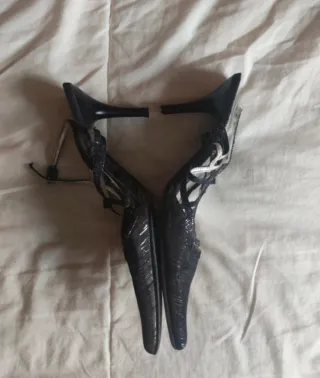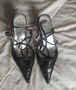 Elegantes zapatos de tacón con un diseño sofisticado.Ideales para eventos,bodas,Nochevieja... Puestos para dos celebraciones. Talla 40 un poco escasa. - Detalle de nudo en la punta. - Tacón alto y fino. - Interior con logo de la marca.