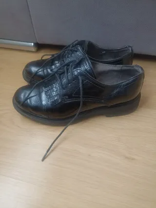 Zapatos de charol con suela de plataforma. - Diseño clásico de cordones. - Acabado brillante. - Suela gruesa y robusta.