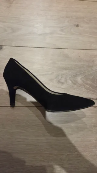 Elegantes zapatos de tacón de ante de la marca MARYPAZ. - Color azul marino. - Talla 41 (EUR/MEX 41, USA 9.5, UK 7, 27 cm). - El tacón mide 7 CMS. NUNCA SE HAN USADO.