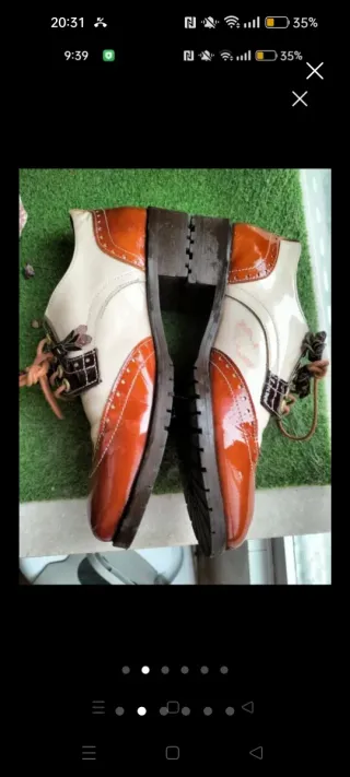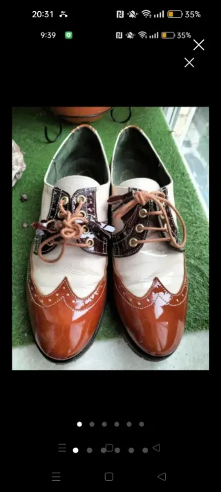 Tienen una mancha ver en la segunda foto.Elegantes zapatos Oxford de mujer con un diseño bicolor. - Combinación de colores beige y marrón. - Detalle de picado en la puntera. - Cordones marrones. - Acabado brillante en las partes marrones.