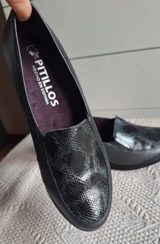 Zapatos de cuña de la marca Pitillos. Muy cómodos. Como nuevos, sólo probados en tienda. - Diseño elegante con detalle de piel. - Fabricados en España.