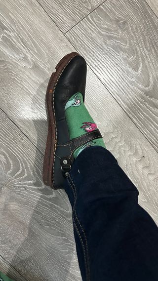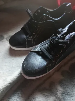 Zapatos tipo mocasín para mujer en color plateado metálico, muy originales y llamativos. Diseño cómodo y elegante, ideales para looks casuales o más arreglados. 🔹 Talla: 38,5 EU (US 8.5) 🔹 Color: Plateado 🔹 Estado: Usados, en buen estado general 🔹 Detalles a tener en cuenta: El acabado metálico presenta marcas visibles y craquelado propios del uso (ver fotos). No afecta al uso, solo es estético. 🔹 Suela en buen estado, con desgaste normal. 📍 Entrega en mano en Granada o envío a cargo del comprador.
