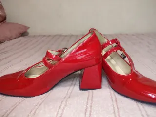 Zapatos Mary Jane Rojos Tacón Bloque