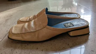 Zapatos destalonados de cuero gofrado, color beig.
