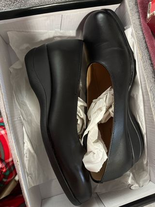 Elegantes zapatos de cuña fabricados en piel. - Diseño de cuña. - Material exterior de piel. - Acabado en color negro.