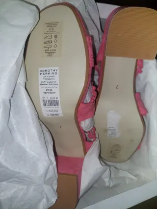 Elegantes zapatos de Dorothy Perkins en color rosa. - Diseño con volantes. - Tira ajustable al tobillo.