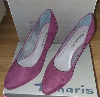 Elegantes zapatos de cuña de la marca Tamaris. - Poco uso - Color morado. - Diseño de cuña. - Material de ante.