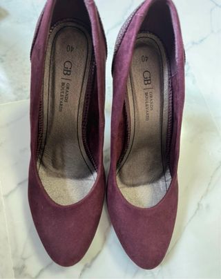 Elegantes zapatos de tacón en color burdeos. - Diseño de punta fina. - Tacón alto y estilizado. - Detalle texturizado en el talón.