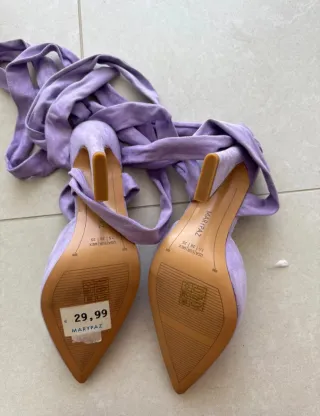 Elegantes zapatos de tacón en color morado, perfectos para cualquier ocasión. - Diseño con tiras para atar al tobillo. - Acabado en ante. - Marca: Mari Paz Spain.