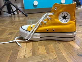 Zapatillas Converse All Star de color amarillo, sin estrenar. - Modelo de suela alta. - Cordones blancos. - Suela blanca con detalles negros. -Estan sin estrenar debido a que fue un regalo y no me quedan bien a mi.