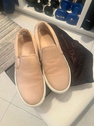 Zapatos planos de Massimo Dutti en color beige. - Diseño slip-on. - Detalle trenzado en el talón. - Suela blanca.