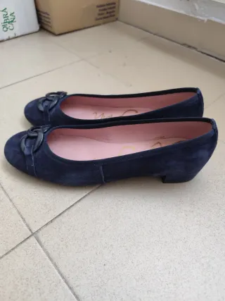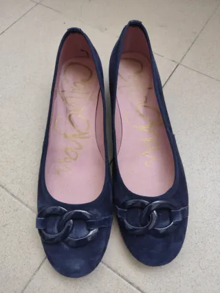 Elegantes zapatos planos Callaghan para mujer en color azul. Muy poco uso (aproximadamente 5 veces por tallaje) No tengo la caja - Diseño de ante. - Detalle de eslabones decorativos en la pala. - Interior con logo de la marca.