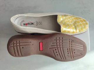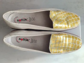 Zapatos planos de la marca NOTTON con un diseño elegante y cómodo. - Diseño con detalle de escamas en la puntera. - Plantilla piel - Fabricados en España. - Material exterior de piel. Número 41 Plantilla interior de piel Suela de goma con diseño ergonómico anti deslizante sin estrenar su precio real 70€ urge vender por falta de espacio