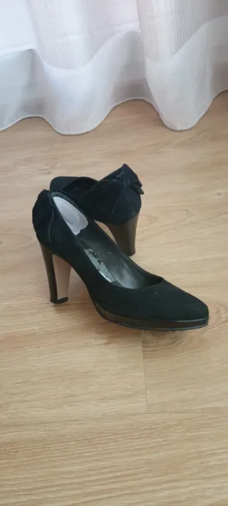 Elegantes zapatos de tacón de la marca Piola. Tallan grande lo que quiere decir que equivaldrían a un 36. El tacón y la plataforma son de charol y el resto de ante. En la parte trasera tienen el detalle de un lazo. El tacón mide 8,5 cm. y la plataforma 2 cm. Sólo se han usado para una ceremónia. Puedes ver otros en mi perfil y además quizás encuentres algún otro artículo que te vaya bien y puedes hacer un lote para que te pueda aplicar descuentos.