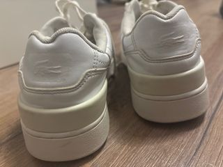 Zapatos de mujer de la marca Lacoste en color blanco. Presentan el icónico logo del cocodrilo. - Diseño deportivo y casual. - Cierre con cordones. - Detalle de perforaciones en el lateral.
