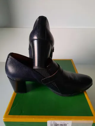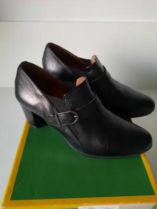 Elegantes zapatos de piel de la marca Maria Jaen. - Talla 37. - Color negro. - Diseño con tira y elástico lateral. Los he usafo poco y sólo para ir en coche (en una de las fotos se puede apreciar el buen estado de la suela). Los vendo porque no puedo llevar tacones. Ver más calzado en mi perfil y recuerda que hago descuentos por lotes