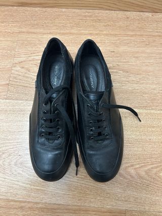 Zapatos Elvio Zanon en talla 37, combinando negro y burdeos. Estilo blúcher cerrado de piel con cordones. Tacón grueso y cómodo para uso prolongado. Estado: muy bueno, usados solo en una ocasión. Se entregan con caja original. Precio original: aprox. 145€. 📦 Envío rápido y embalaje cuidado. ✅ 100% auténticos Elvio Zanon (marca italiana).