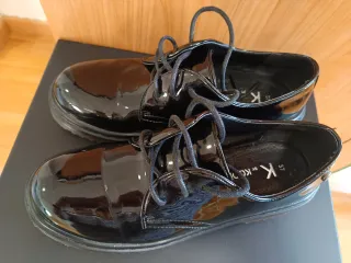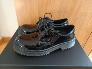 Mocasines de charol con cordones, perfectos para un look elegante. - Acabado brillante. - Suela gruesa y resistente. - Diseño clásico de cordones.