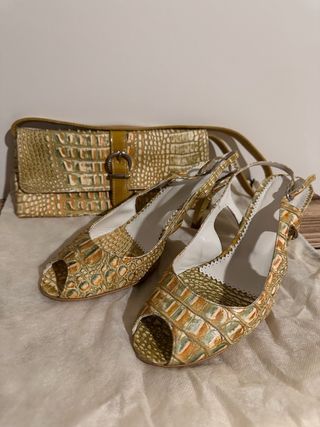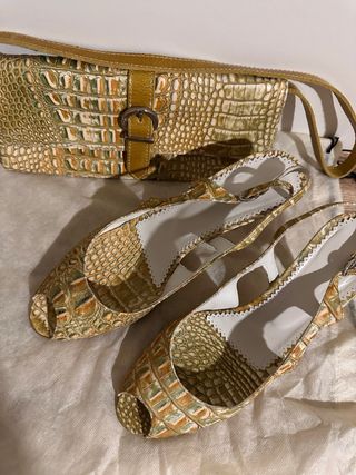 Elegante conjunto de bolso y zapatos de piel Talla 38 solo usados para un evento 🔥🧡🔥