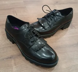 Elegantes zapatos tipo Oxford en color negro. Perfectos para ocasiones formales o para dar un toque sofisticado a tu atuendo. - Diseño clásico Oxford. - Cordones negros. - Acabado en piel.