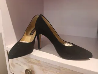 Zapatos de tacón alto de ante color negro en muy buen estado. (Se han usado sólo una vez) Talla 37
