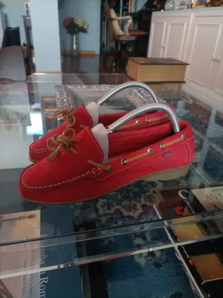 Mocasines de ante en color rojo, perfectos para un look casual. - Material: Ante - Detalle de cordones en la pala - Costuras decorativas