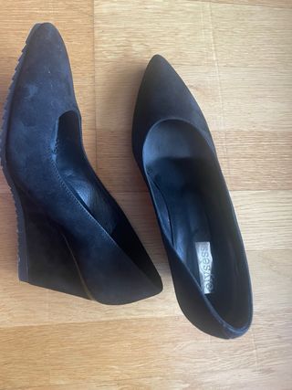 Elegantes zapatos de ante en color morado, con un discreto tacón de cuña. - Material: Ante - Color: Morado - Talla: 39