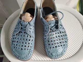 Elegantes zapatos de cuero con un diseño trenzado. - Material: Cuero - Color: Azul - Estilo: Trenzado