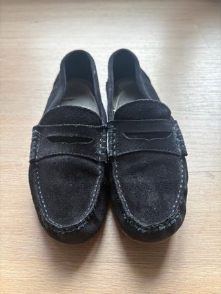 Mocasines de ante en color azul marino, perfectos para niños. Se han usado un par de veces - Diseño clásico de mocasín. - Acabado suave de ante. - Costuras visibles.
