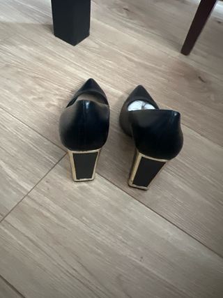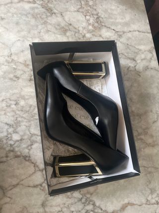 Elegantes tacones con un diseño sofisticado. - Acabado en piel. - Detalle metálico dorado en el tacón.