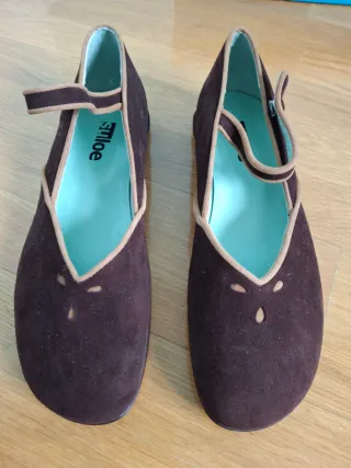 Elegantes zapatos de ante en color marrón. Regalo para alguen que interese.😉 No acepto la devolución🙏 - Diseño con tira al tobillo. - Detalle de pespuntes en contraste. - Interior en color turquesa.