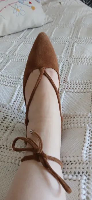 Manoletinas de ante con tiras para atar al tobillo. - Material: Ante - Diseño: Tiras cruzadas y lazada al tobillo - Punta fina