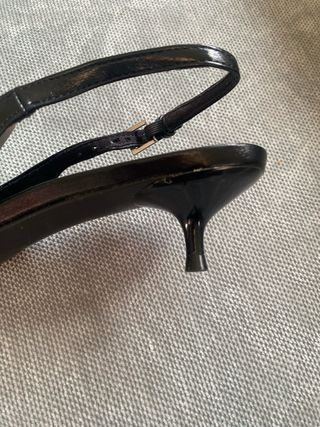Zapatos de tacón de la marca Uterqüe sin apenas uso, como se puede ver en las fotos. - Diseño cruzado en la pala. - Correa al tobillo con hebilla. - Tacón grueso y estable.