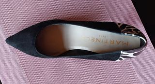 Elegantes zapatos de la marca Martinelli con un diseño moderno. - Punta afilada. - Detalle de estampado animal print en el talón. - Interior con logo y año de la marca.