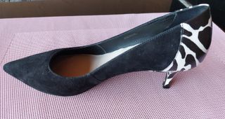 Vendo estos zapatos de salón con tacón regulable. Son de ante. Los tacones pasan de 8 a 4 centímetros en dos sencillos pasos. Sistema imán. ¡Nuevos!