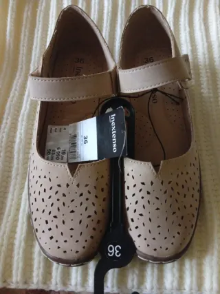 Zapatos planos de la marca Inextenso, sin estrenar y en perfecto estado. - Diseño con perforaciones decorativas. - Cierre de tira con velcro. - Suela de goma.