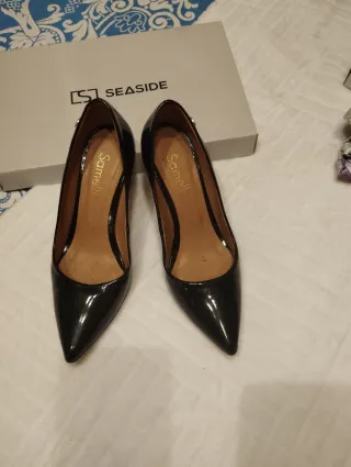 Elegantes zapatos de tacón de charol negro de la marca Seaside. Un clásico que no puede faltar en tu armario. - Diseño de punta fina. - Tacón de aguja para estilizar la figura. - Acabado brillante.