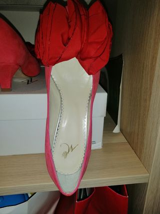 Elegantes zapatos de piel en color rojo, perfectos para ocasiones especiales. - Diseño de serpiente. - Tacón fino. - Correa ajustable al tobillo. Talla 38. Son estrechos. están poco usados se ve en el tacón. son de piel de esta rígida. me costaron 180. mandadme ofertas pero están regalados. Los mando con caja aunque esté rota