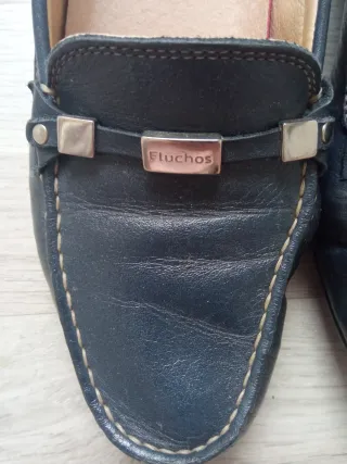 Elegantes mocasines de mujer comodísimos con un diseño moderno y detalles de flecos. - Acabado brillante. - Hebilla decorativa. - Suela gruesa. Muy buen estado